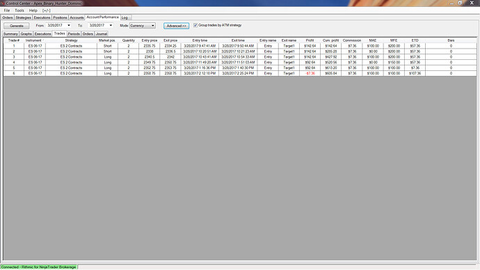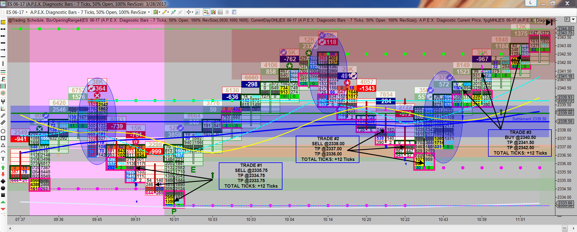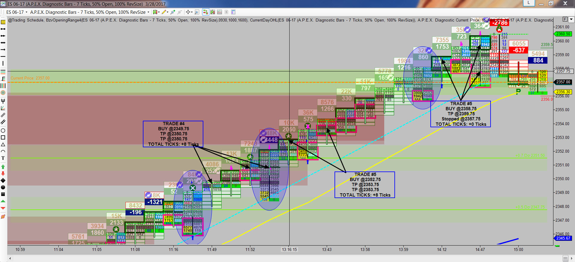 FUTURES TRADES ON ES (S&P 500 Index) FOR 03/28/2017 using the APEX SEES, VAD2 and ORDER PRINTS