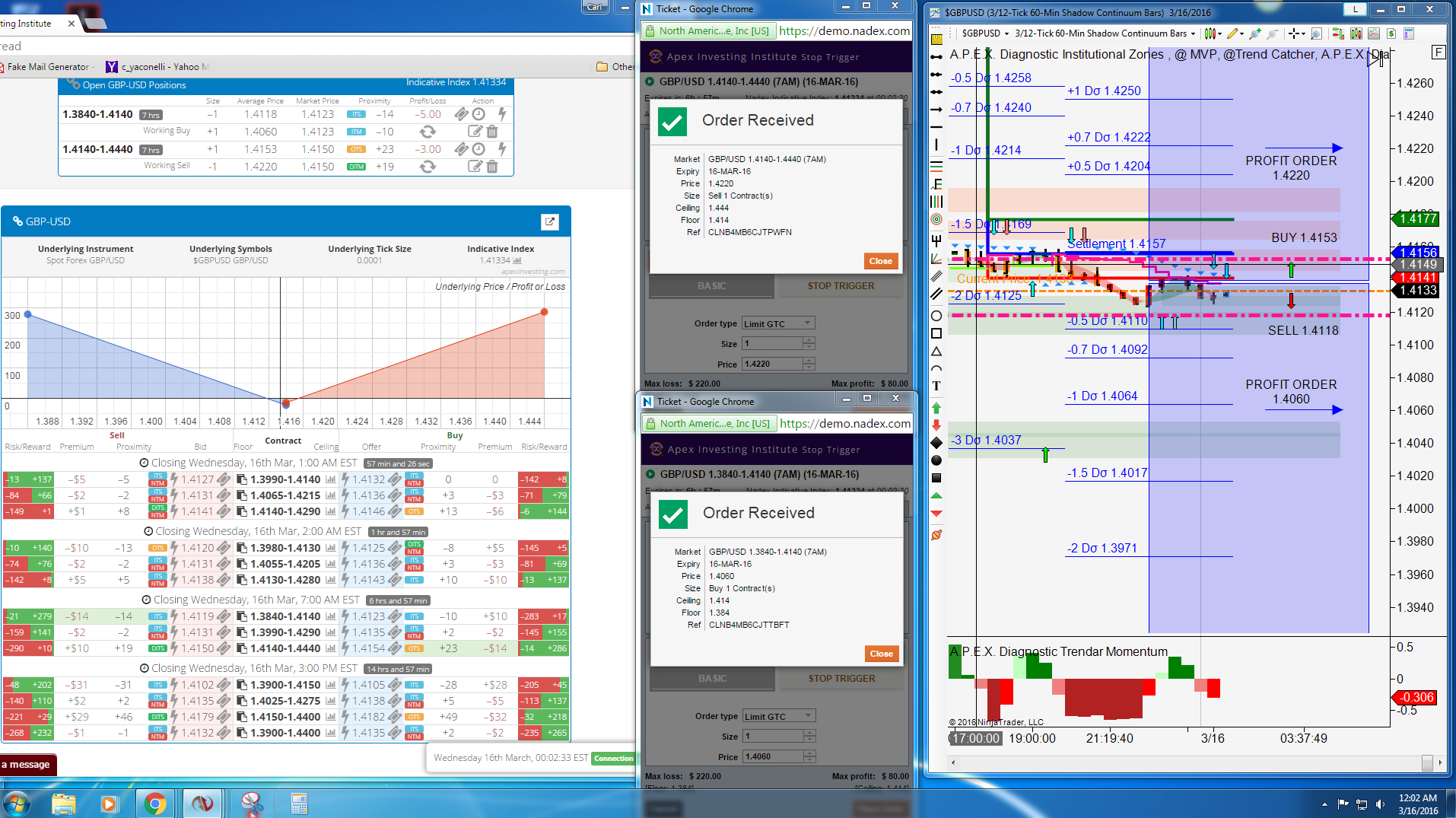Three reports will be released Wednesday, March 16, 2016, at 5:30 AM ET providing a trade opportunity. If you don’t like being up this early in the morning, no worries. This trade setup calls for entry the night before, Tuesday at 11:00 PM ET for 7:00 AM ET expirations using Nadex GBP/USD spreads.