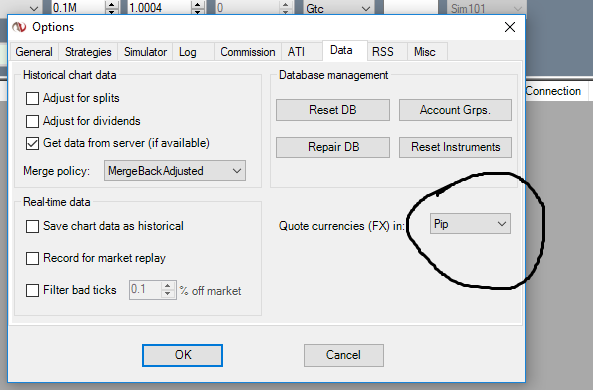 AT the Ninja Trader Control Center -