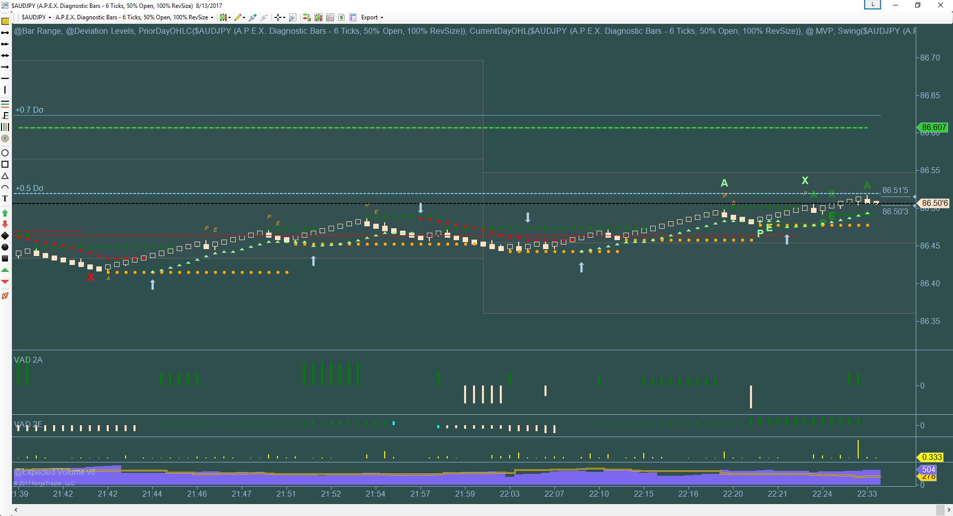 Trying to get Ninja set up for Power Plays… I have watched the videos multiple times…charts seem right for NQ for example, but with forex pairs the VAD is gapping out with whole bars showing no volume at all…